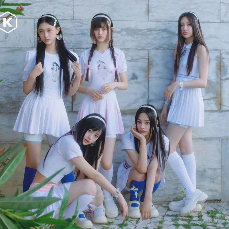 NewJeans Get Up T-shirt - Super Shy: in 100% cotton fabric, available in sizes S to 3XL, in white. Unisex model. Available to all group members.